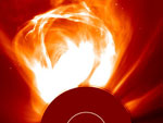Космическая обсерватория SOHO Европейского космического агентства и NASA зафиксировала выброс корональной массы (СМЕ) во вторник, 16 июля 2013 года, в 12.24 мск и отметила, что миллиарды тонн заряженных частиц движутся в направлении Земли со скоростью 560 километров в секунду и достигнут орбиты 17-18 июля.